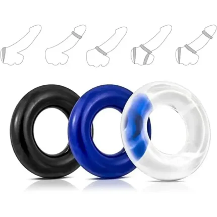 Silikon Penis Halkası Seti – Uzun ve Sert Ereksiyon İçin Esnek TPR Halka, 3’lü Set