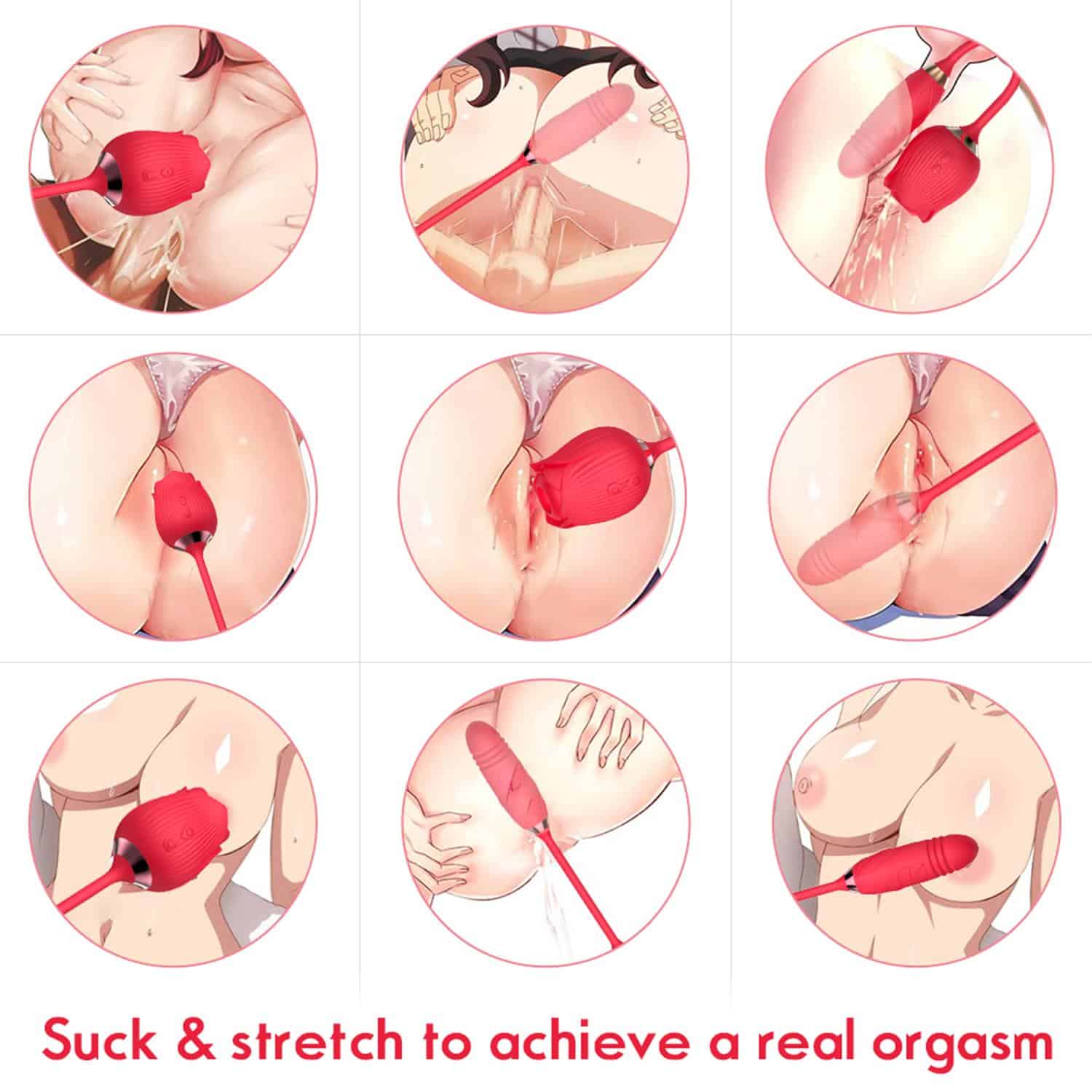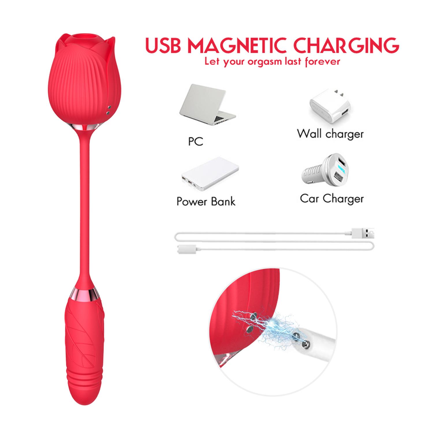 Gül Tasarımlı Çift Fonksiyonlu Vibratör – 10 Emme + 10 Titreşim Modu, Su Geçirmez ve Manyetik Şarjlı